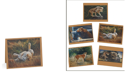 1- I have added greeting cards to my shop. A pack of 10 of the same animal image ($13.96). Mixed packs of 5 (for $13.71.)