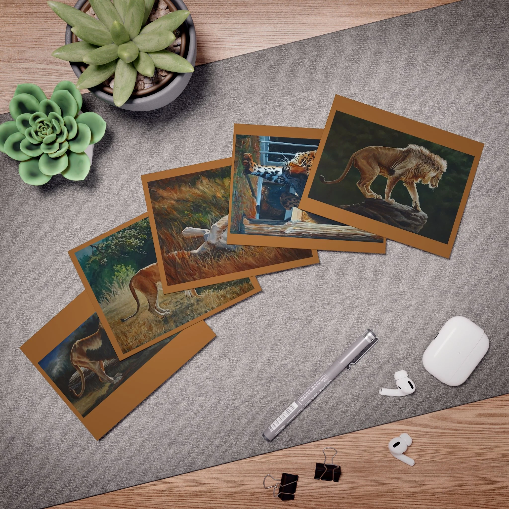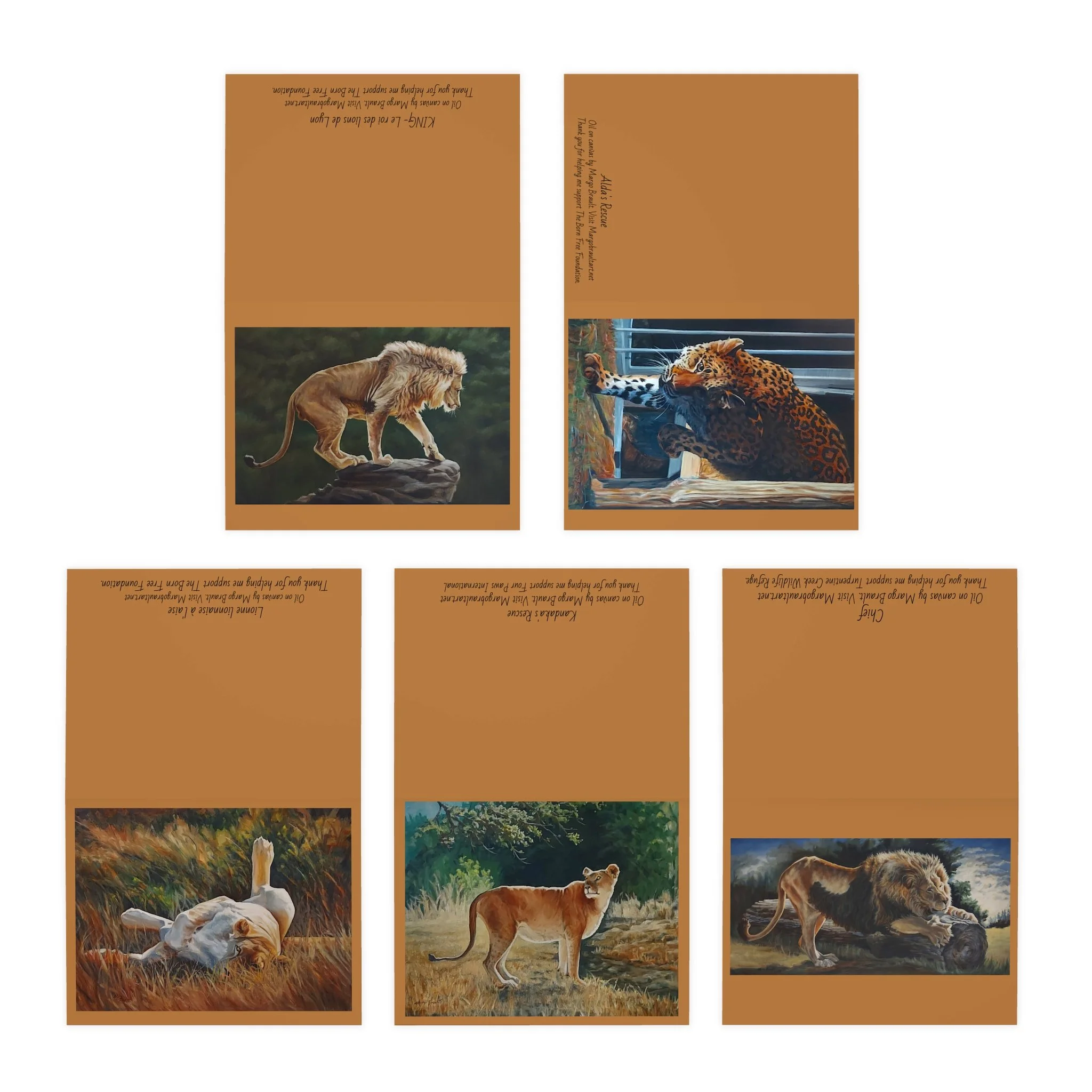 Big cats greeting cards. Assorted 5-pack with envelopes.