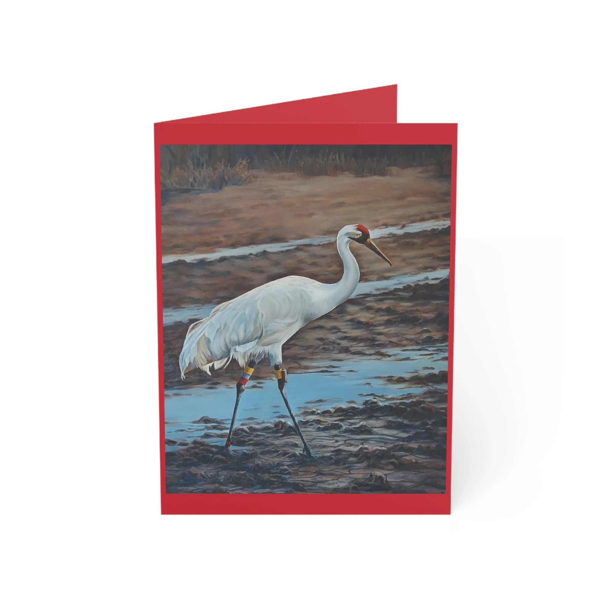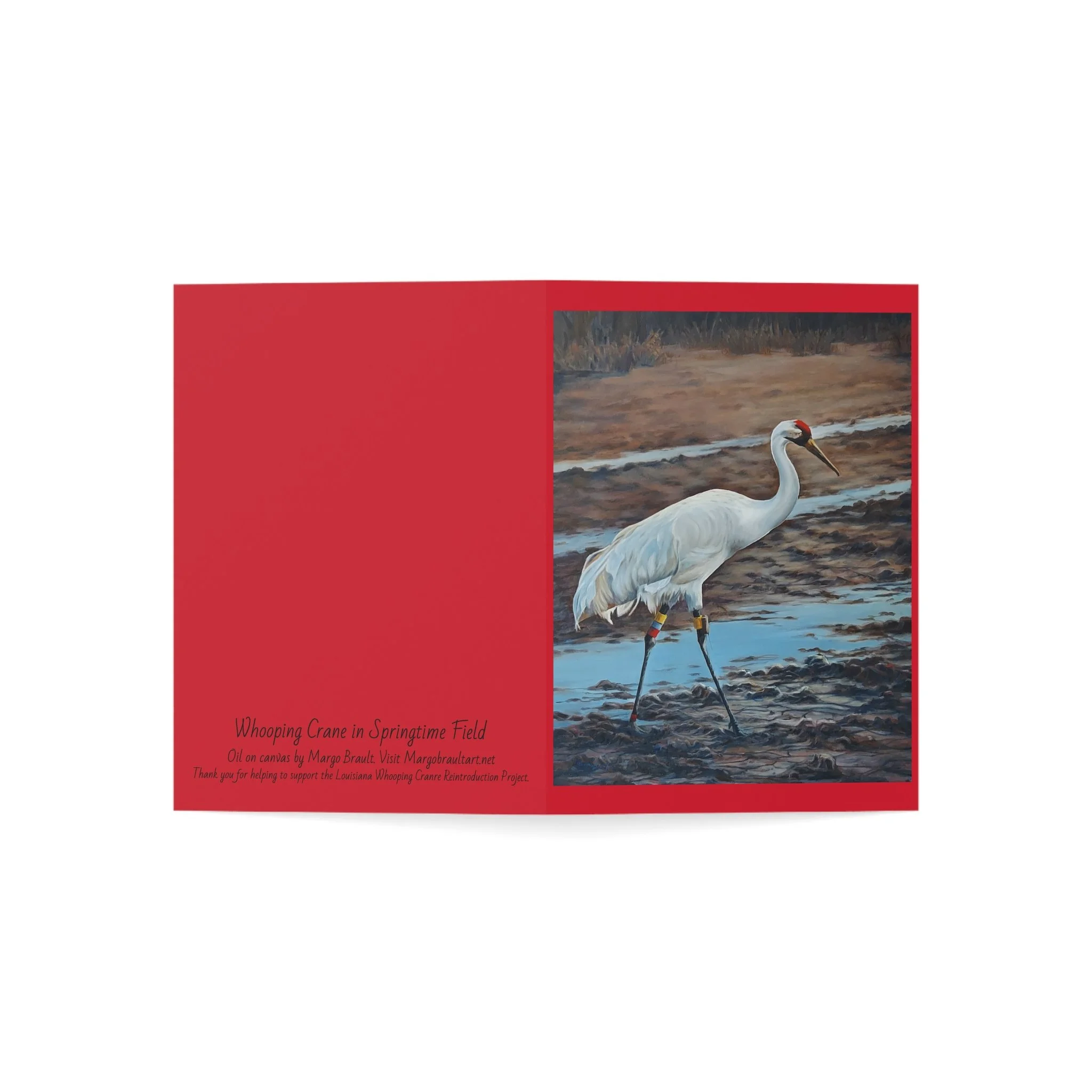 Adult Whooping Crane in Springtime Field -Pack of ten cards with envelopes. Blank inside 4.9 x 3.5".
