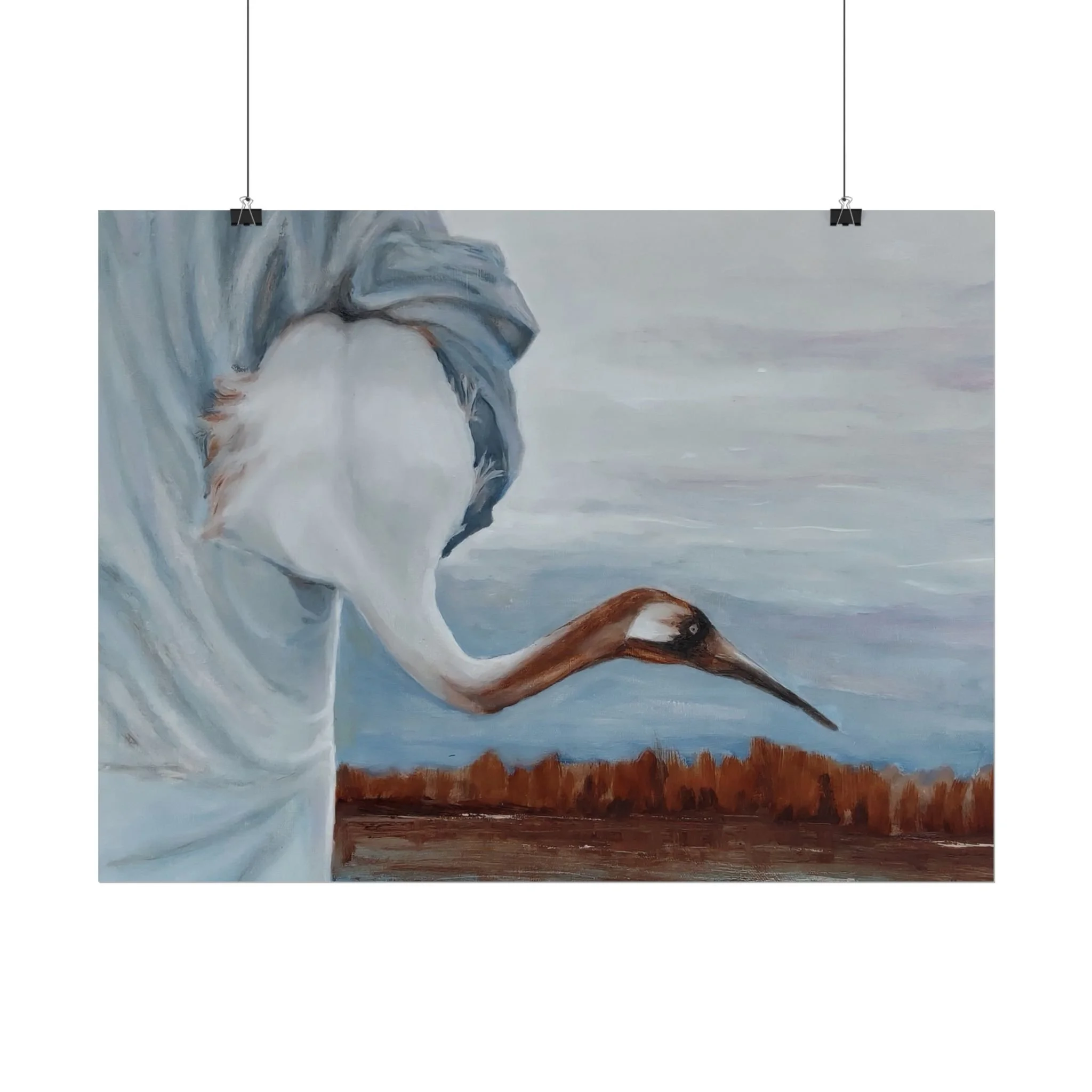 Juvenile Whooping Crane about to be released -Fine Art Rolled Posters.