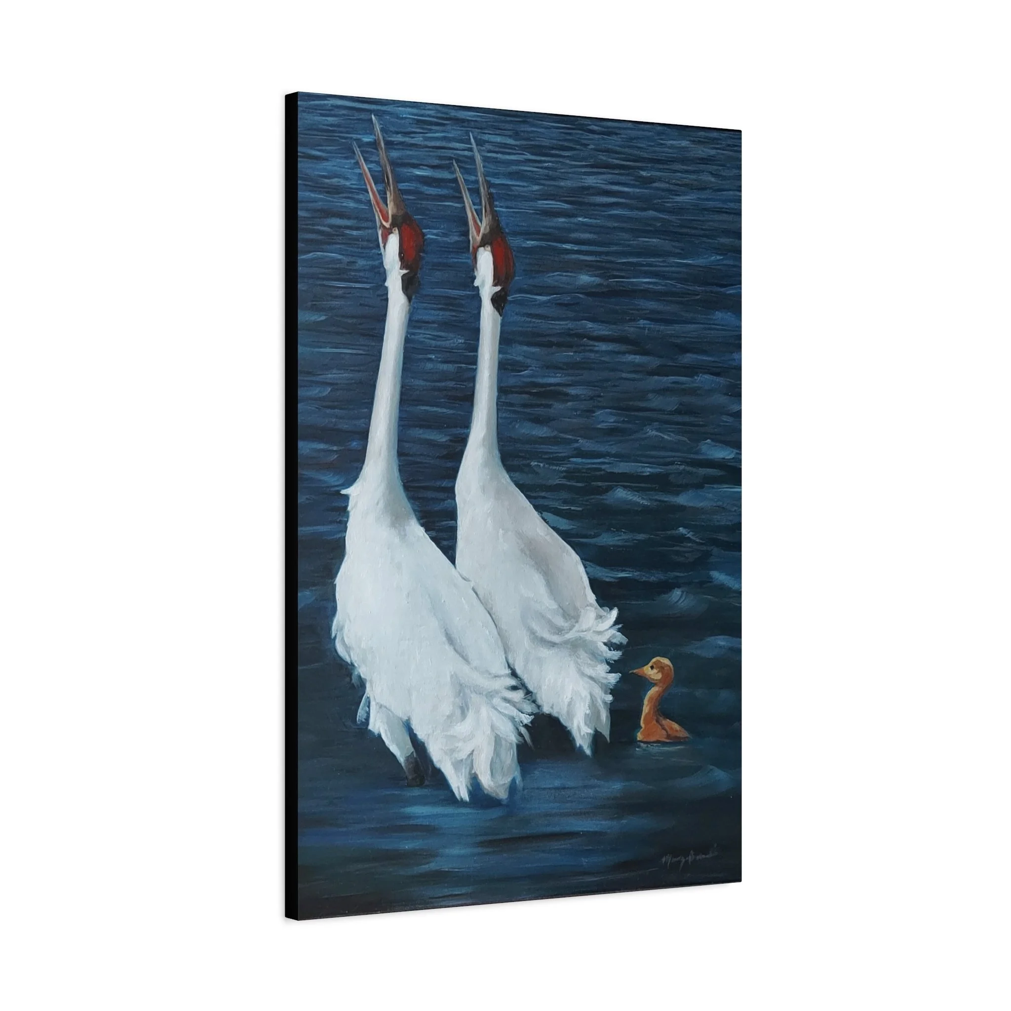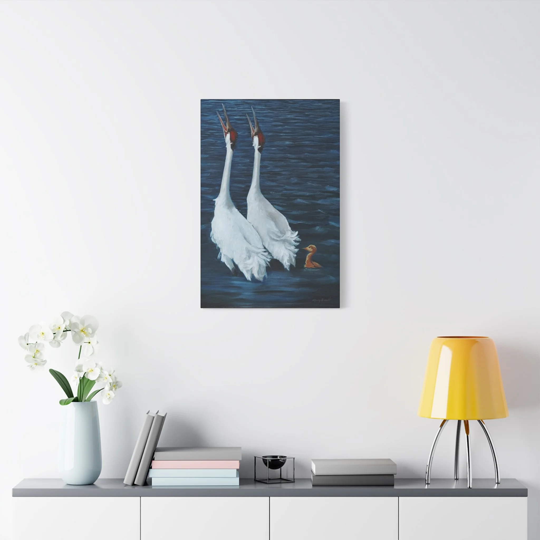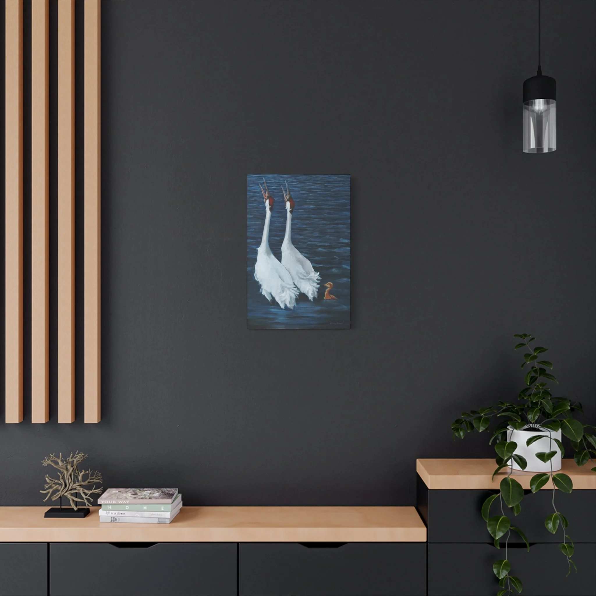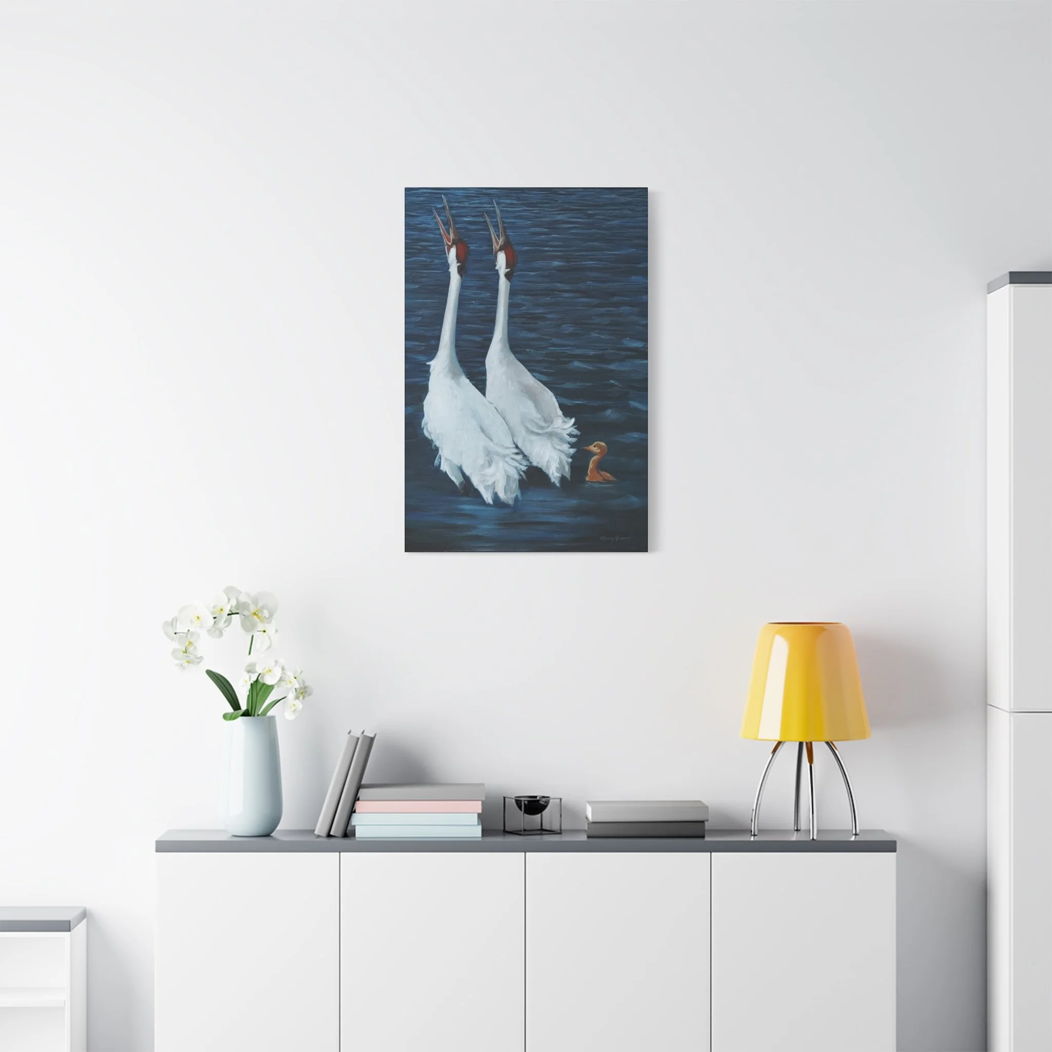 Louisiana Whooping Crane family in Lake. Matte Canvas Stretched, 1.25"
