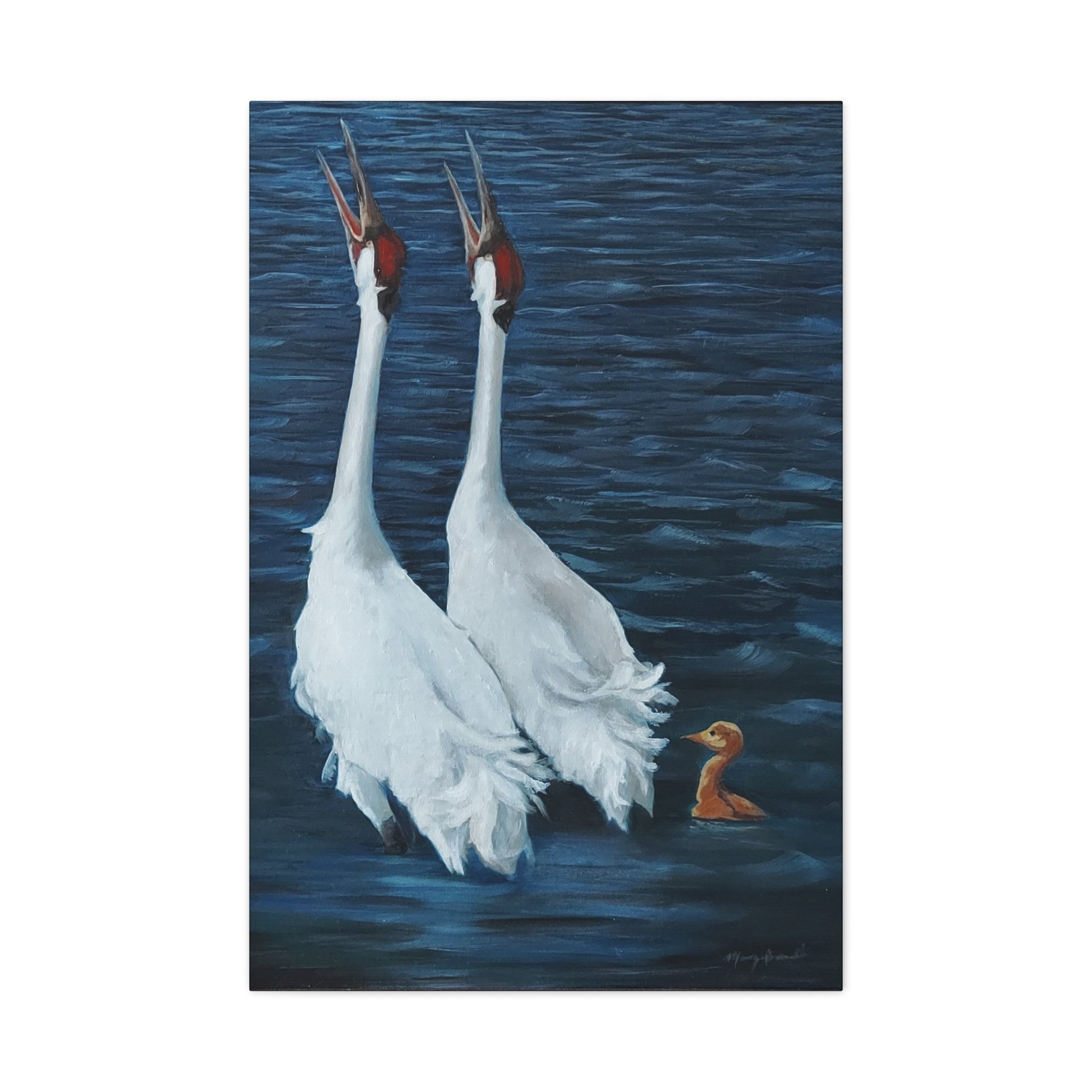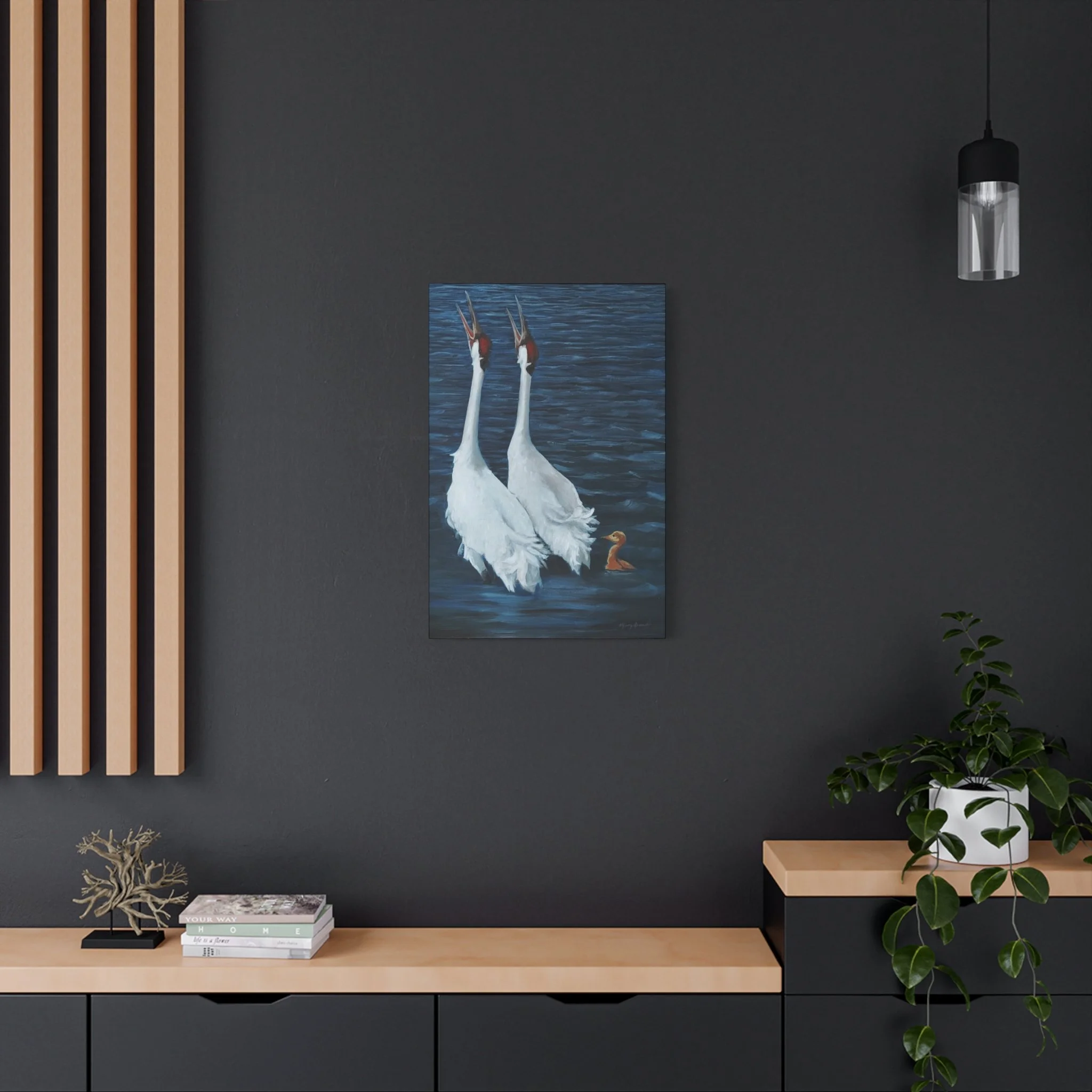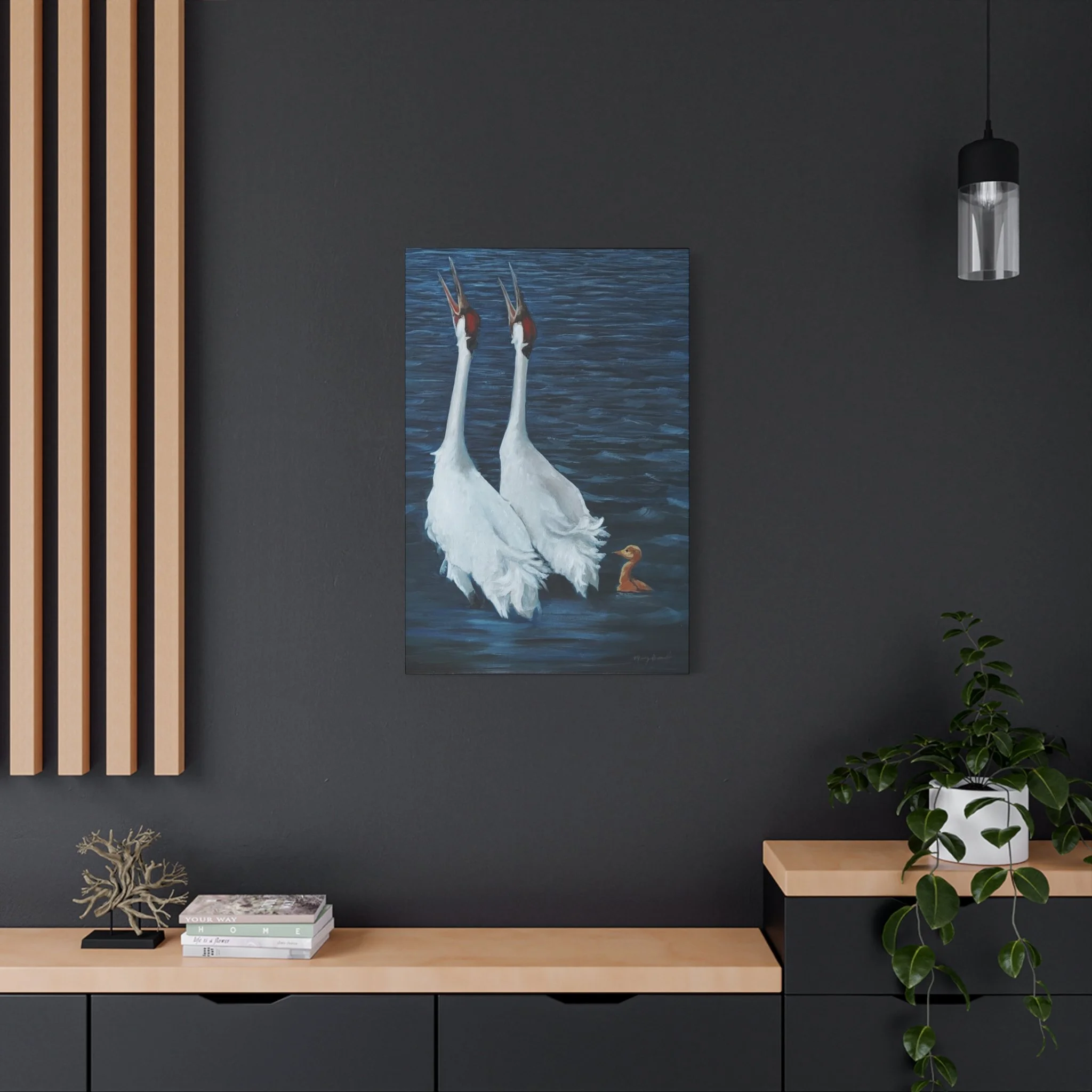 Louisiana Whooping Crane family in Lake. Matte Canvas Stretched, 1.25"
