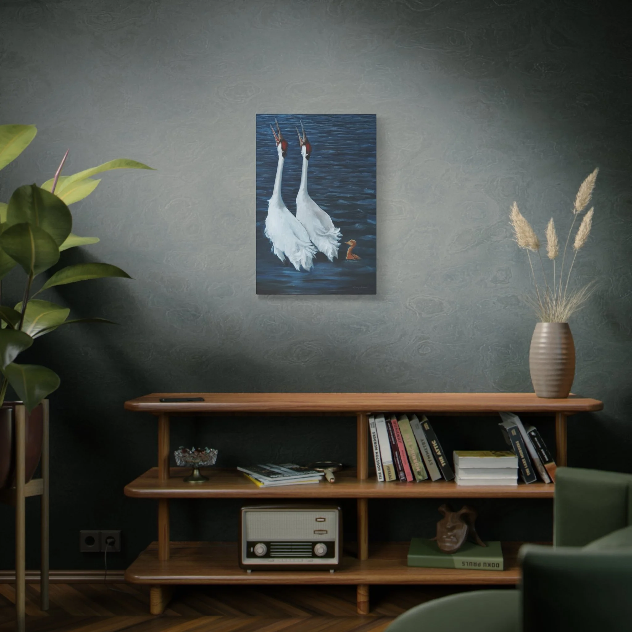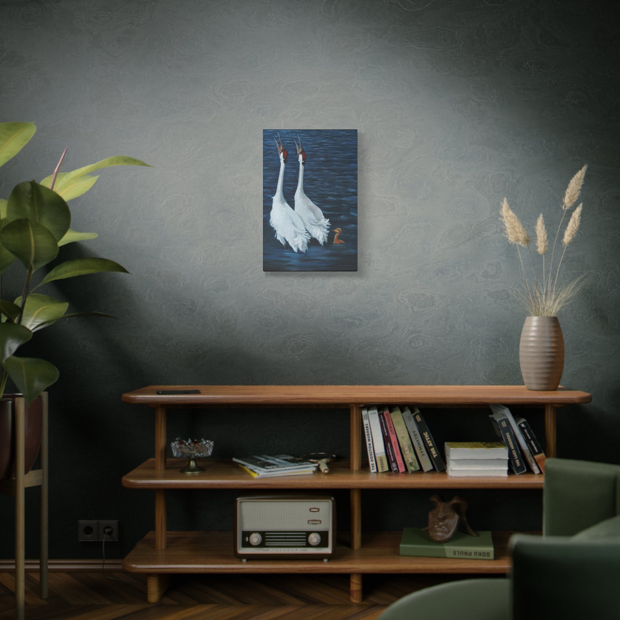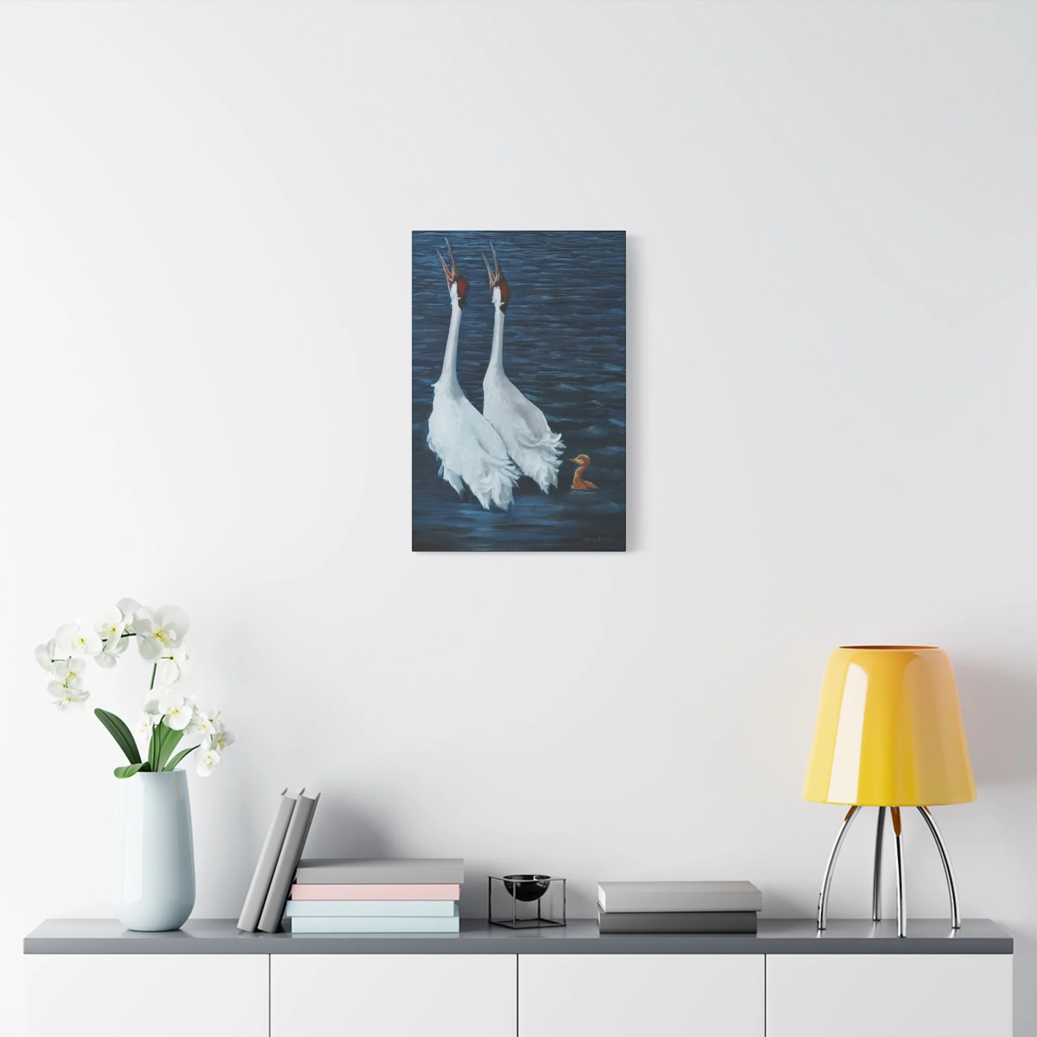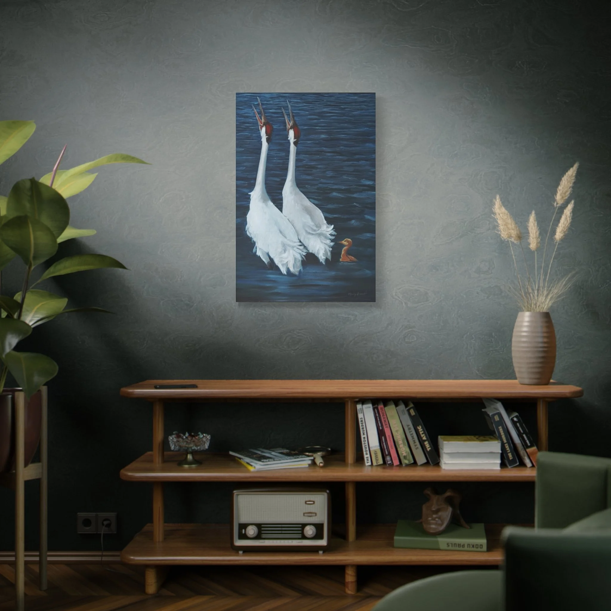 Louisiana Whooping Crane family in Lake. Matte Canvas Stretched, 1.25"