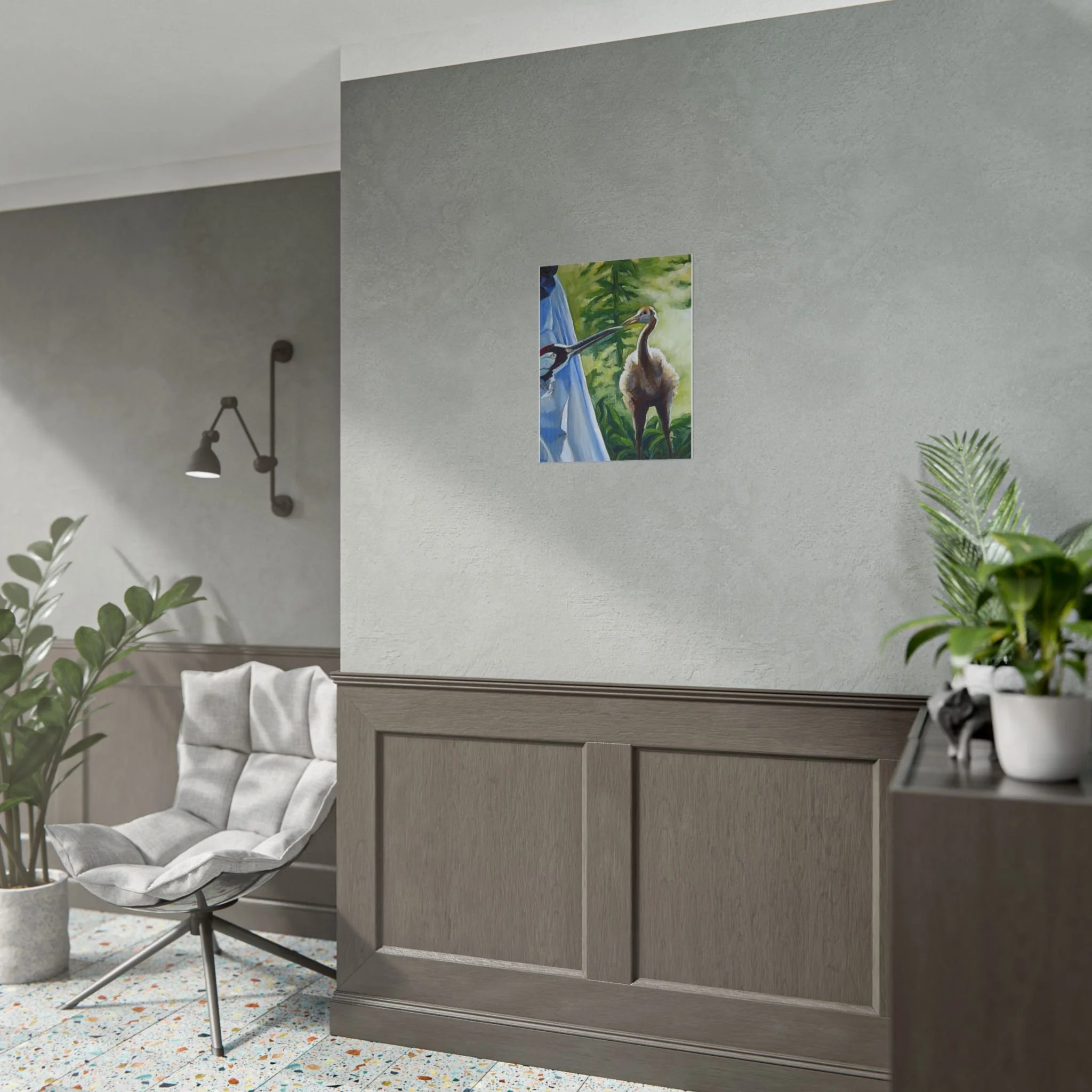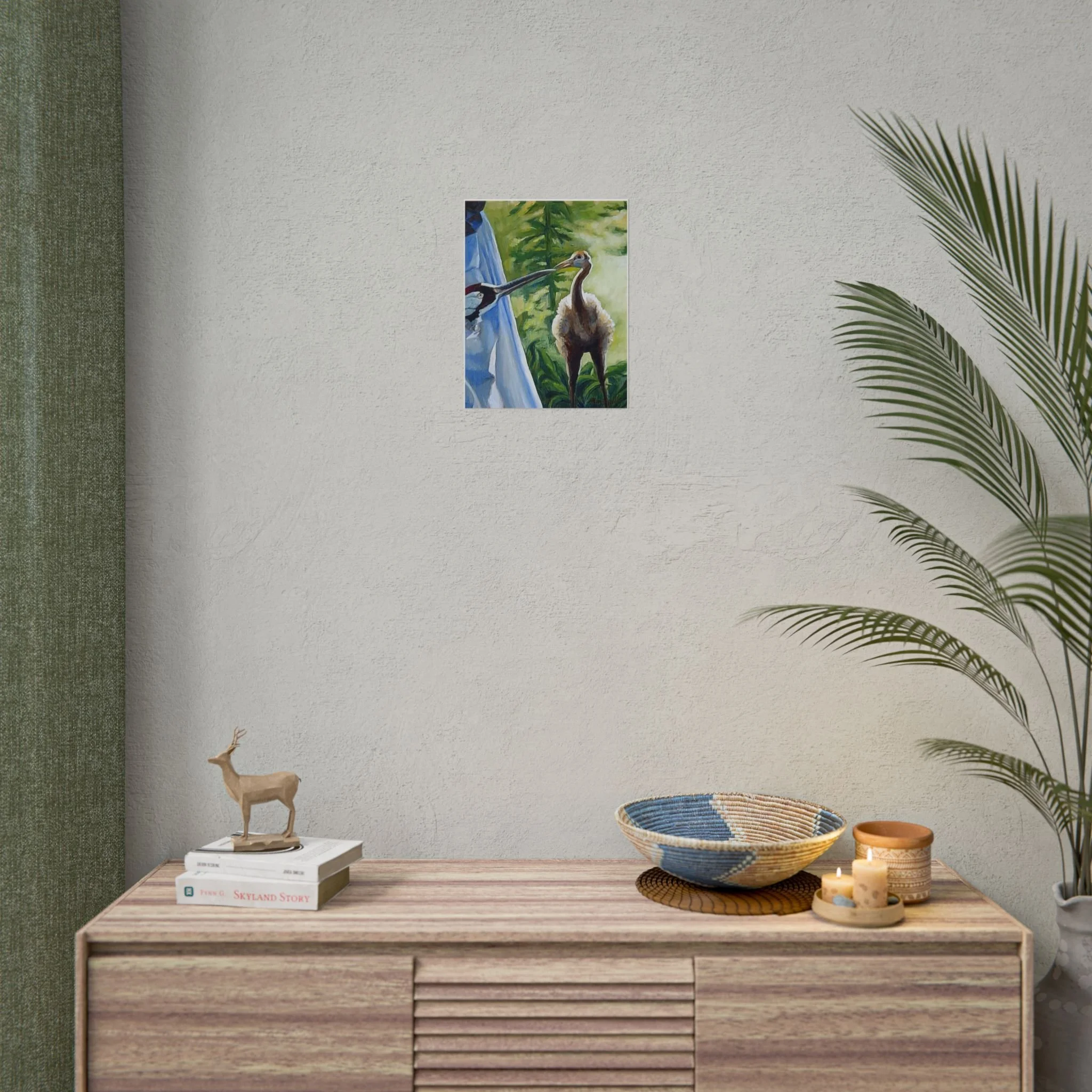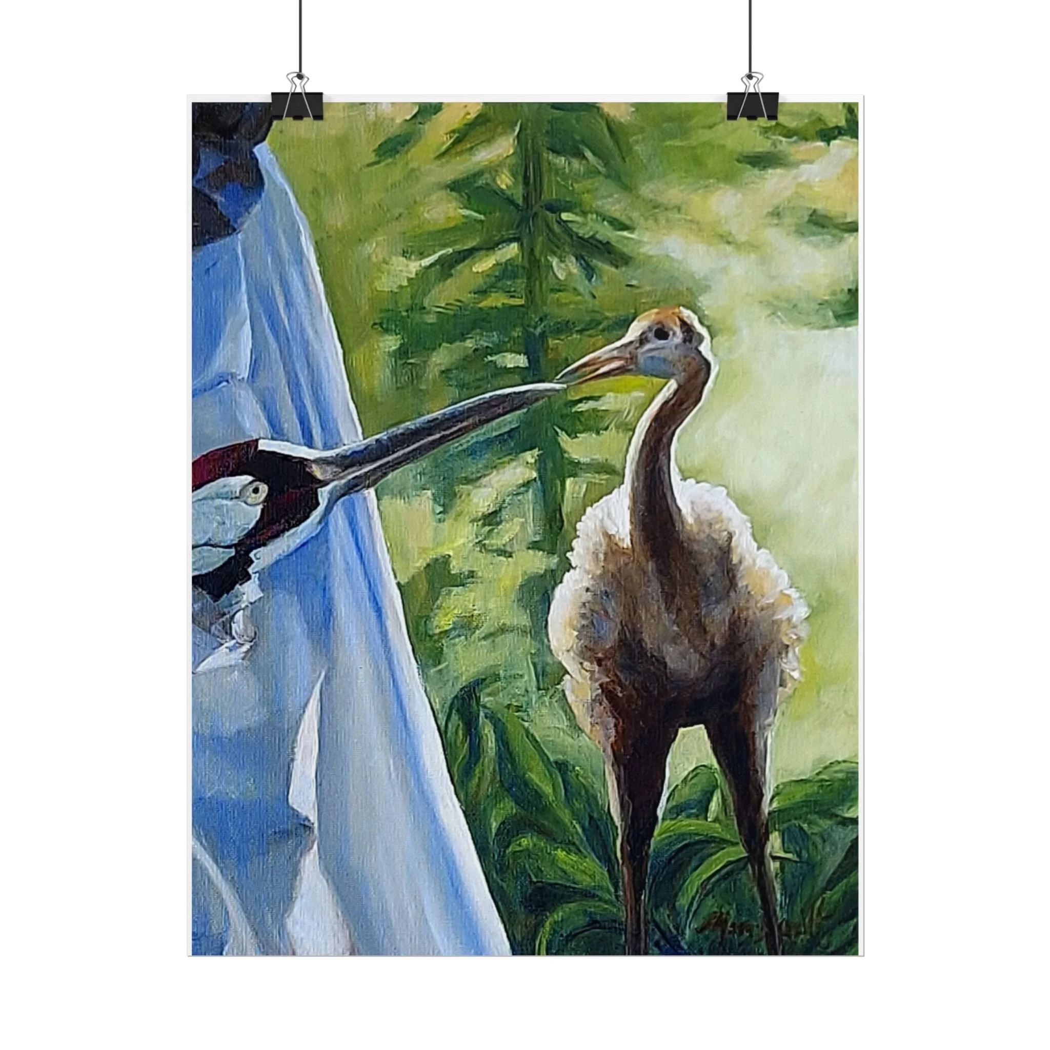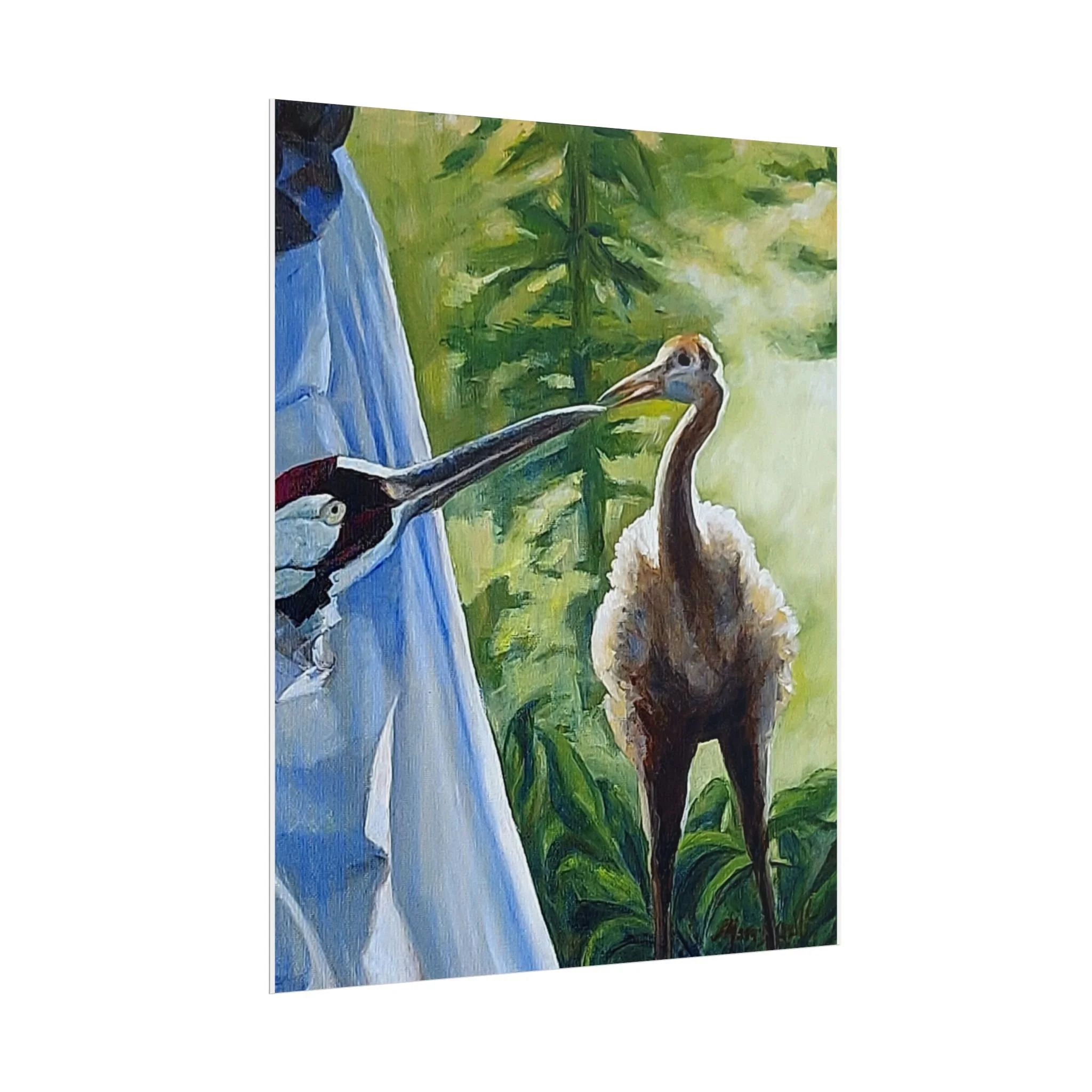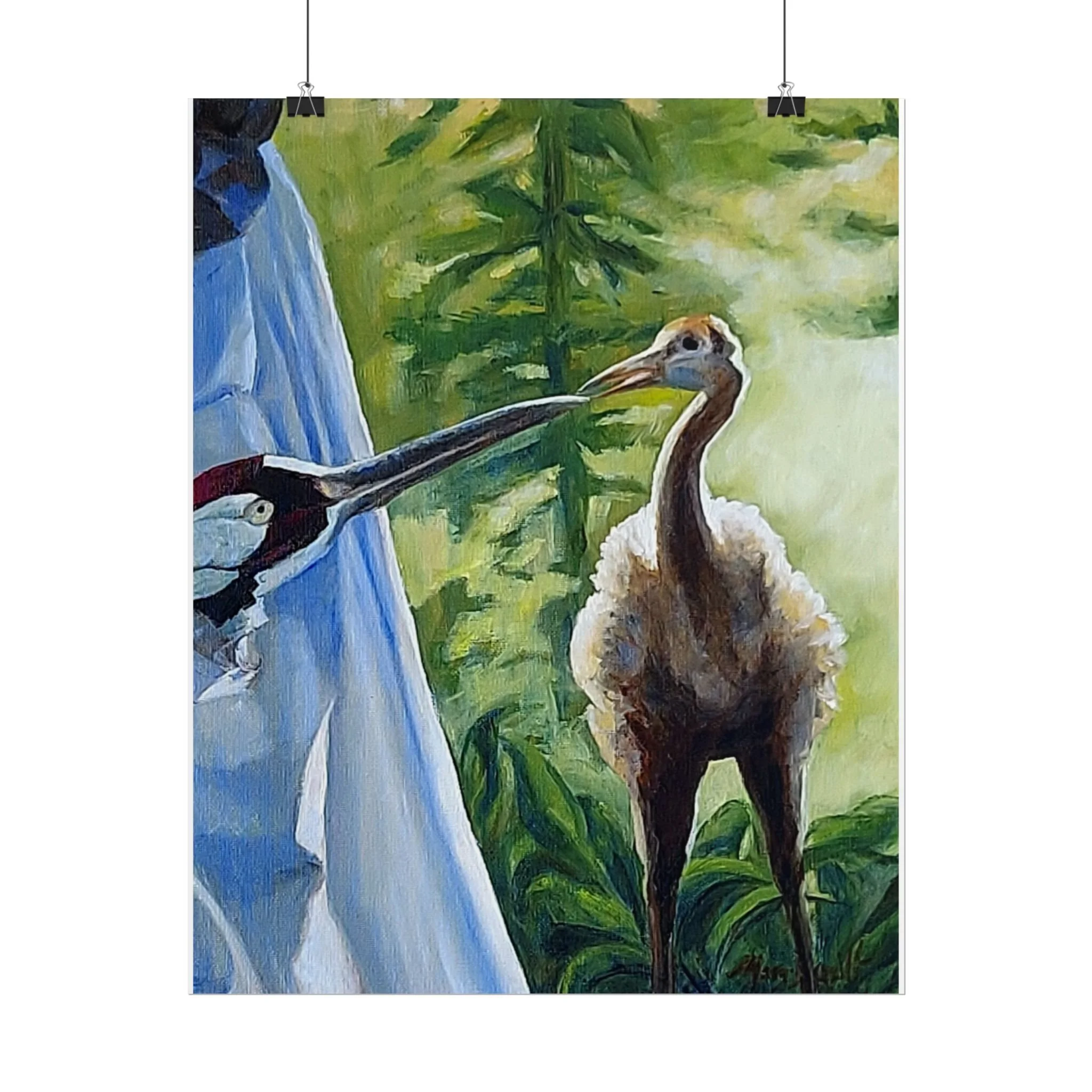 Whooping Crane Chick with Handler and Puppet -Fine Art Rolled poster