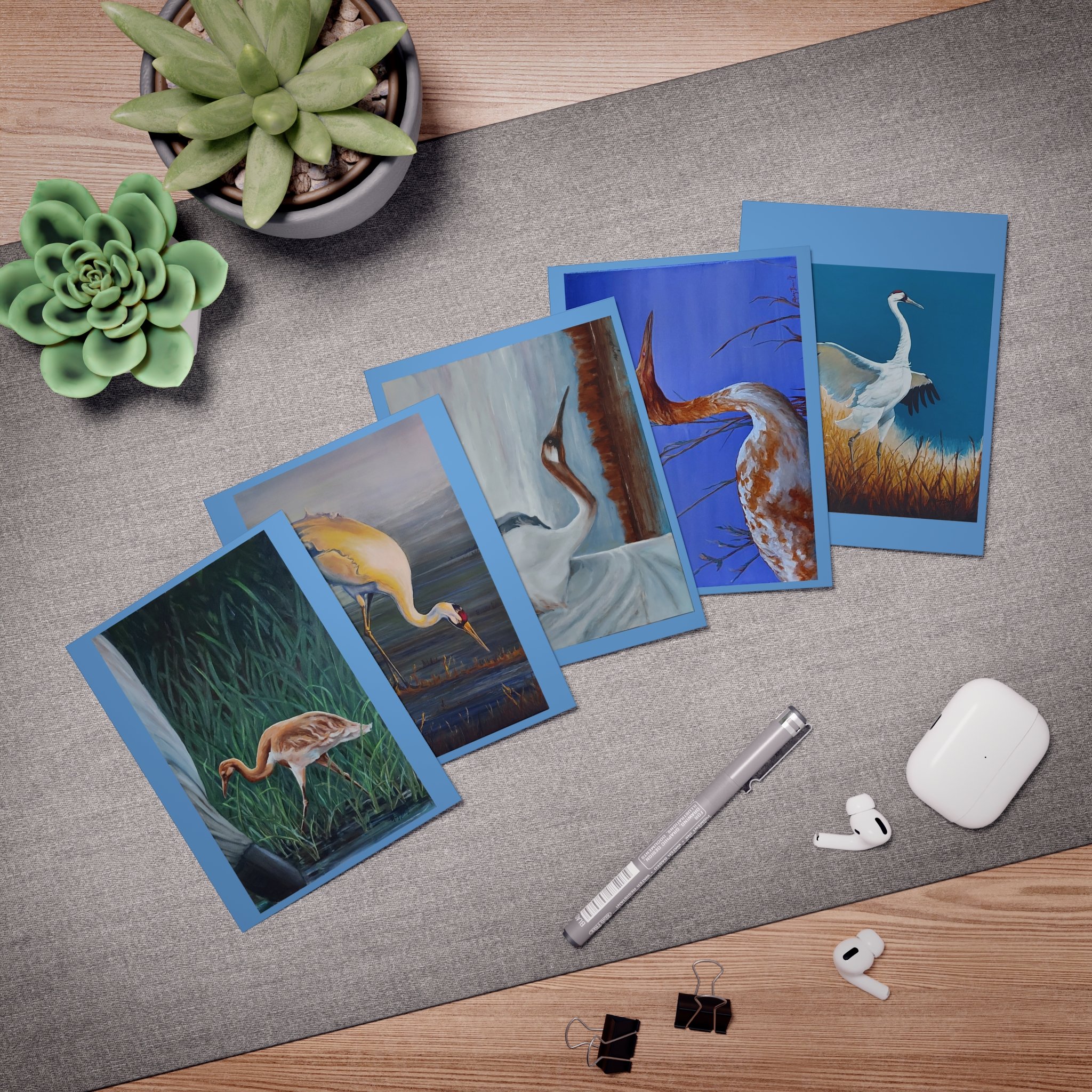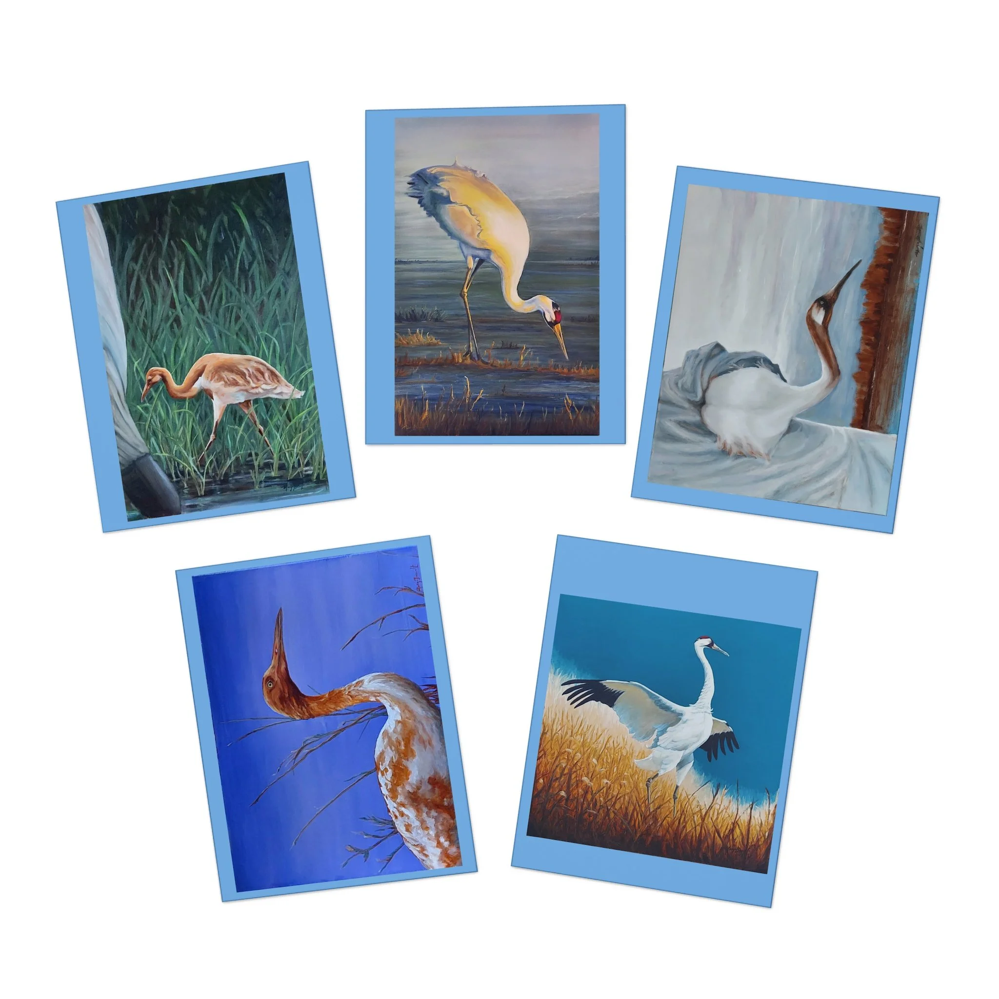 Whooping Crane greeting cards. Blank inside. Assorted 5-pack with envelopes