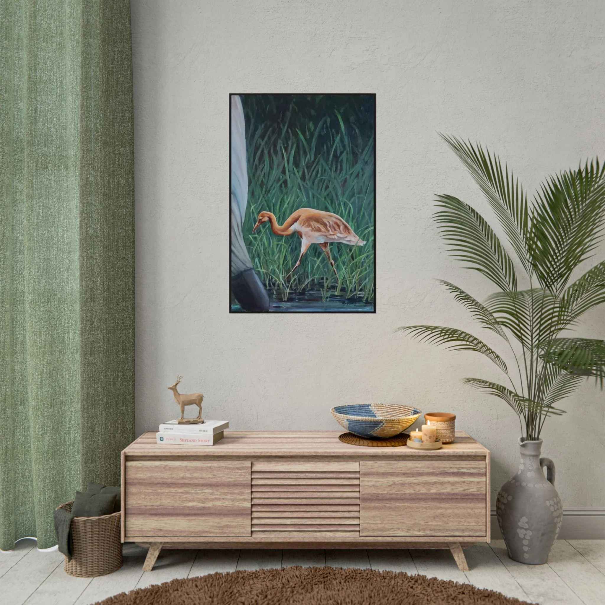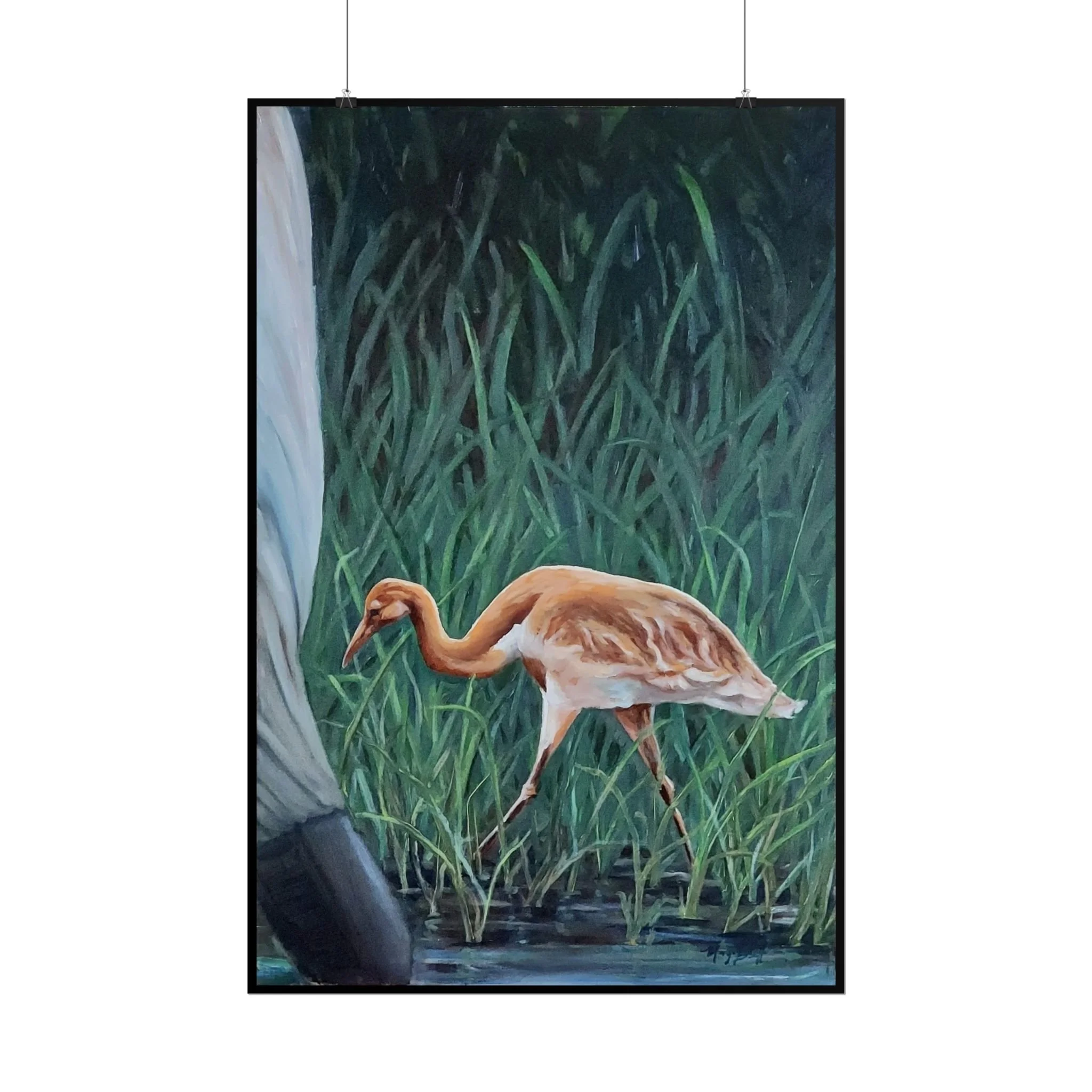 Whooping Crane Juvenile following Handler - Rolled Poster