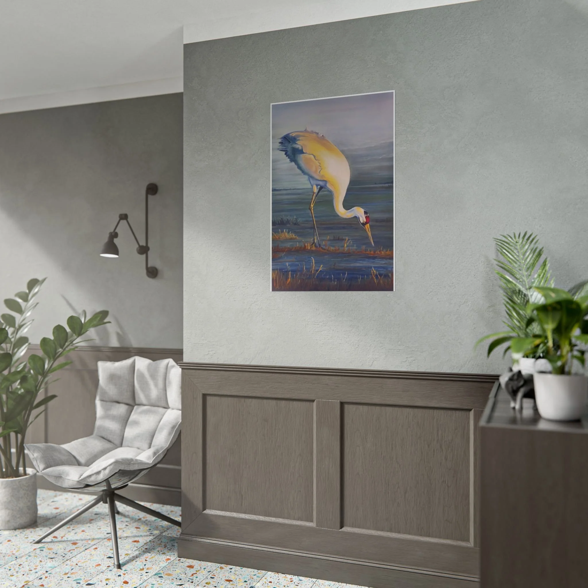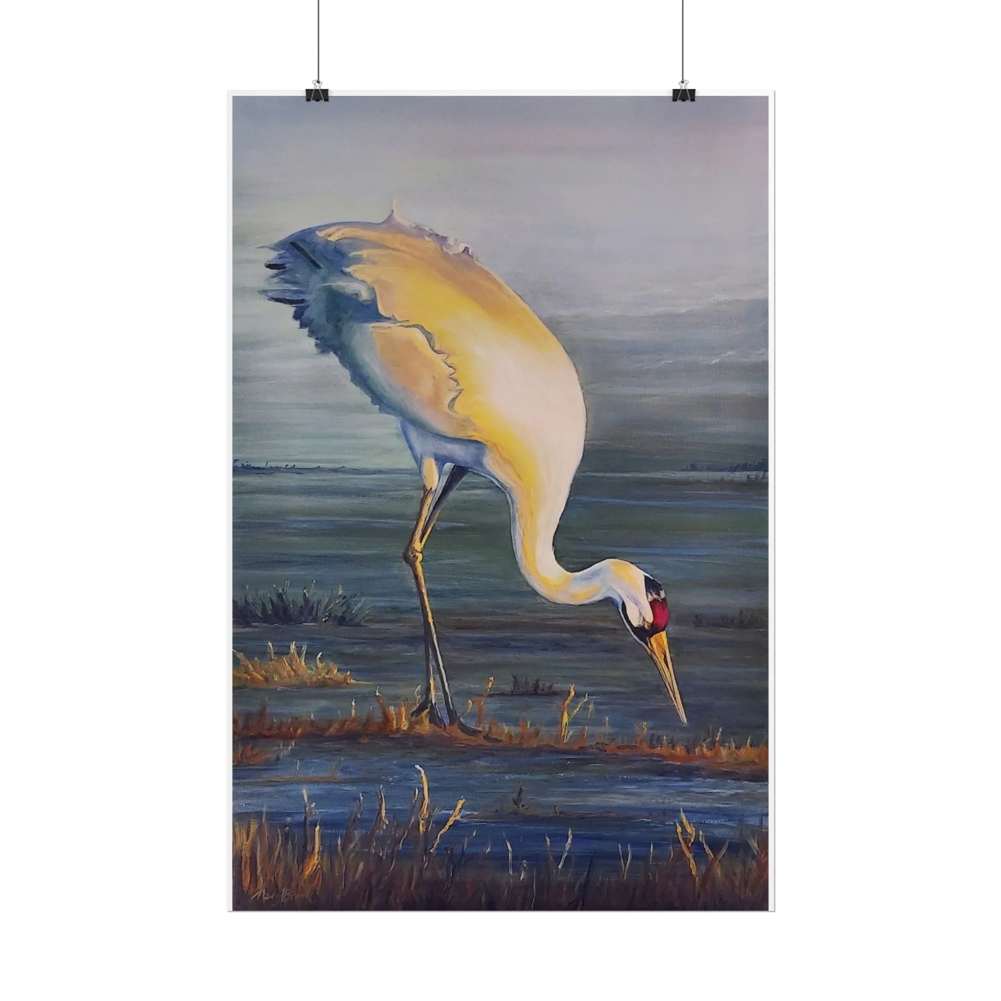 Whooping Crane's Evening Meal -Fine Art Rolled Posters